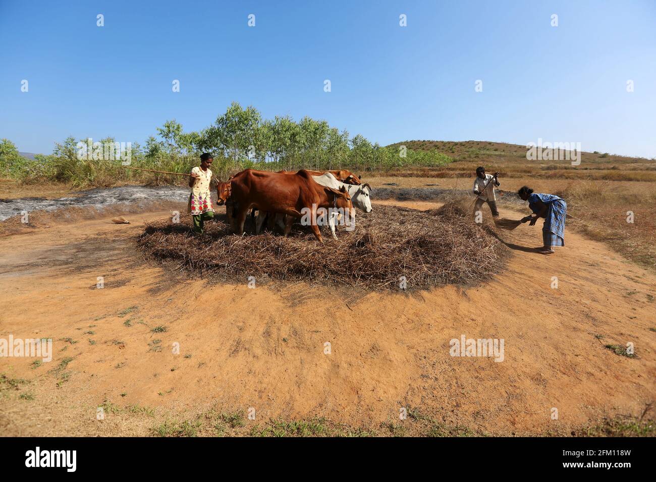 위 구절의 ‘떠는’은 추워설 벌벌 떤다고 할 때의 ‘떨다’가 아니라 달려 있거나 붙어 있는 것을 쳐서 떼어 낸다는 뜻의 ‘떨다’다. 영어 성서들에는 tread out으로 번역되어 있다. 발로 밟아 탈곡을 한다는 의미다.